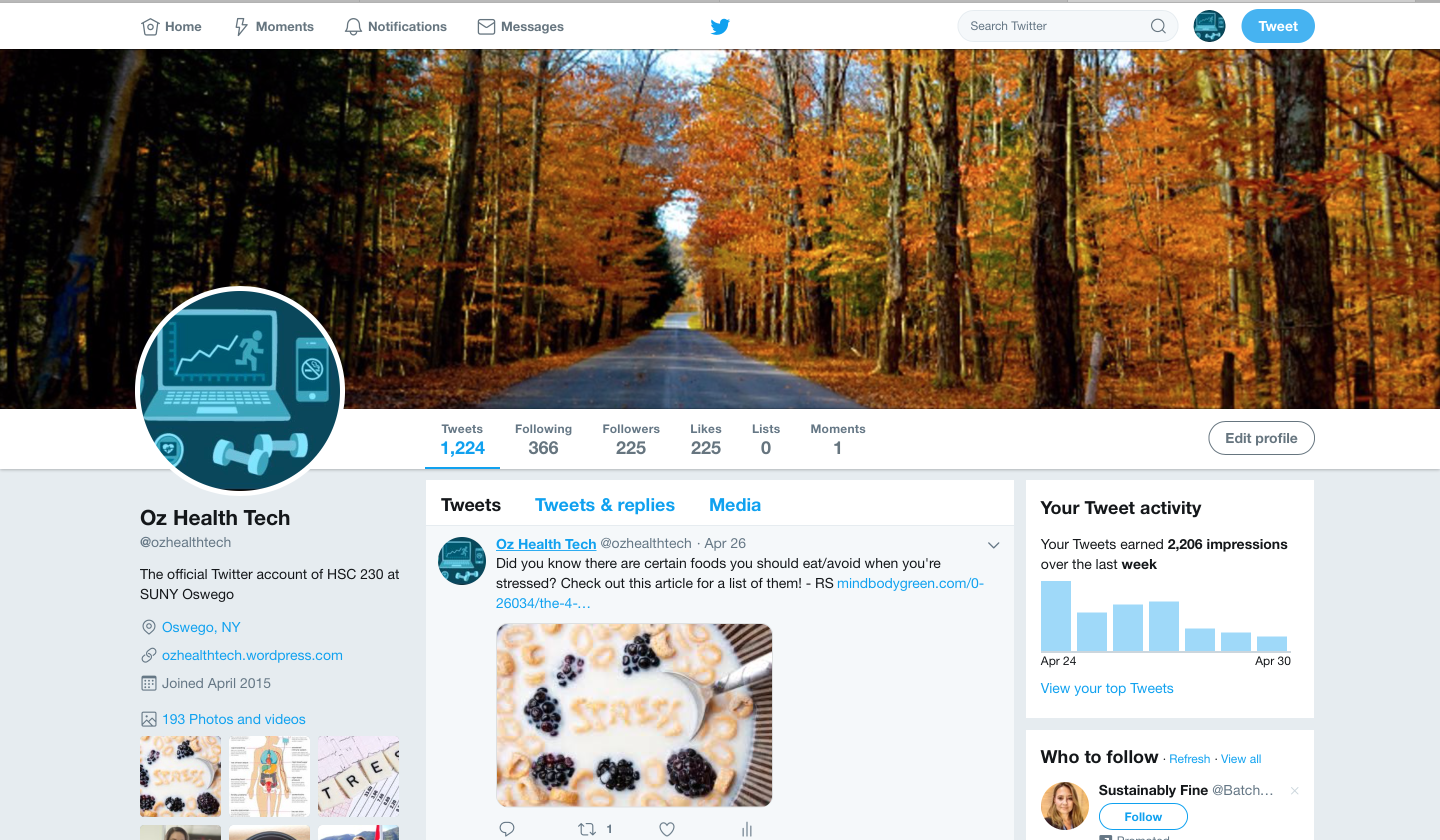 I have completed my week on the Oswego health tech twitter page. When I started, the account had 223 followers and now has 225 followers!